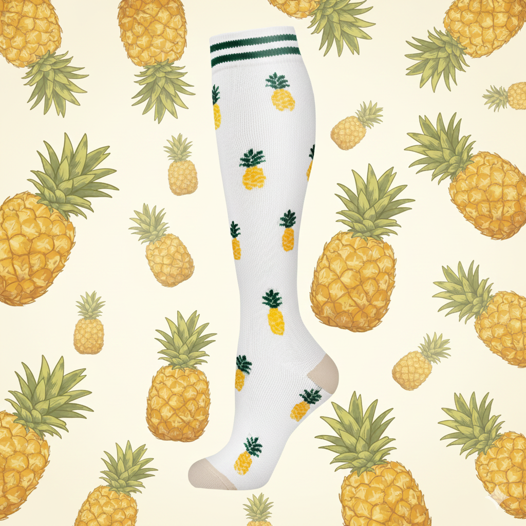 Découvrez nos chaussettes de contention et compression fashion avec des motifs d’ananas, une combinaison parfaite entre utilité et design. Vous méritez de prendre soin de vos jambes sans sacrifier votre style. Ces chaussettes offrent une compression thérapeutique tout en arborant des motifs tropicaux qui ajoutent une touche unique à vos tenues quotidiennes.