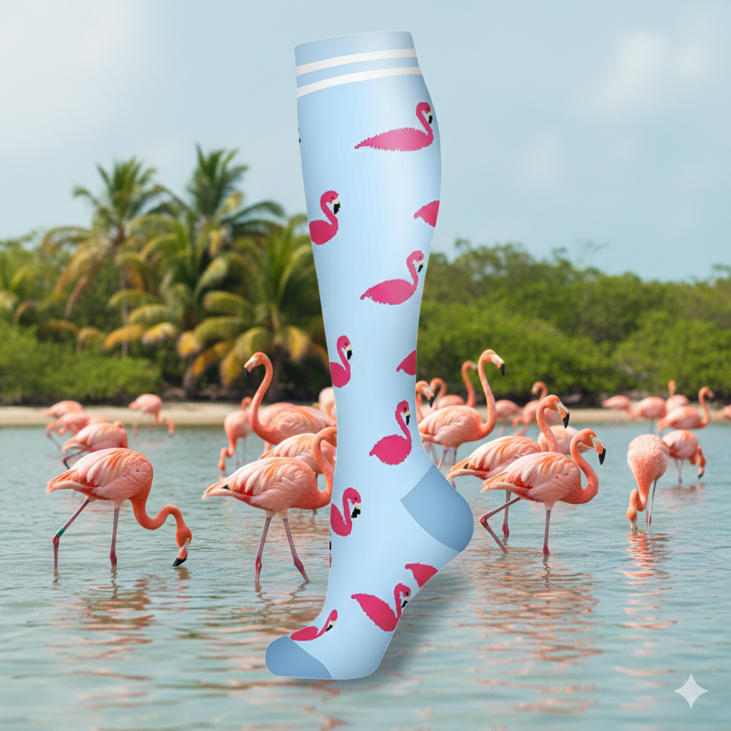 Découvrez les chaussettes de contention et compression fashion avec des motifs de flamant rose, une combinaison idéale entre style moderne et bien-être. Ces chaussettes ont été spécialement conçues pour offrir un confort optimal tout en ajoutant une touche de fantaisie et d’élégance à votre quotidien. Que vous cherchiez du soutien tout au long de la journée ou que vous aimiez les accessoires originaux pour compléter votre tenue, ces chaussettes sont faites pour vous.